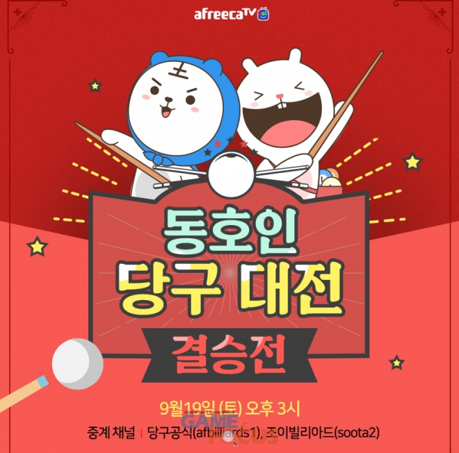 아프리카TV가 19일(토) 오후 3시 '동호인 당구 대전' 결승전을 생중계한다. '동호인 당구 대전'은 UM, 빌포텐, 유니티, 벤투스 등 총 16개팀의 당구 동호회들이 참여해 지난 5월 12일(화)를 시작으로, 약 4개월 간 토너먼트 형식으로 진행됐다.