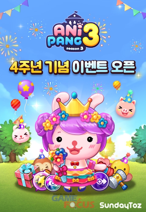 선데이토즈(대표 김정섭)가 모바일 퍼즐 게임 '애니팡3'에서 서비스 4주년을 기념하는 신규 캐릭터들을 선보이고 다양한 이벤트를 진행한다.