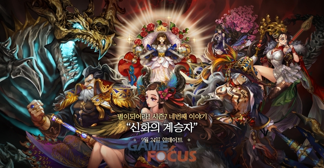 '별이되어라!'는 이번 업데이트를 통해 시즌7 네번째 이야기인 '신화의 계승자'를 오픈한다. 신화의 계승자에서는 신규세력 '하이든'과 새로운 모험지역인 '코랄'이 등장해 더욱 흥미진진한 모험의 세계로 유저들을 초대한다. 오디세이 연합을 이끌며 우주 최강 세력으로 등장한 '하이든'과 하이든의 최신예 전함인 '코랄'에서 펼쳐지는 스토리가 유저들의 기대감을 높이고 있다.