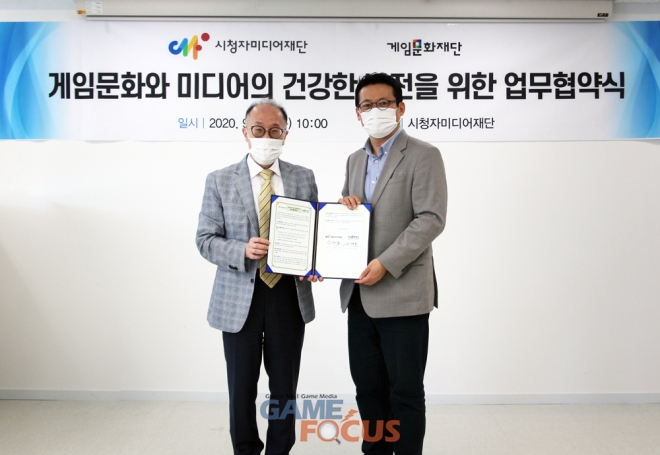 게임문화재단(이사장 김경일, 아주대학교 심리학과 교수)와 시청자미디어재단(이사장 신태섭)이 24일 여의도 시청자미디어재단 본부에서 미디어교육 활성화 및 게임문화 진흥을 위한 업무협약을 체결했다.
