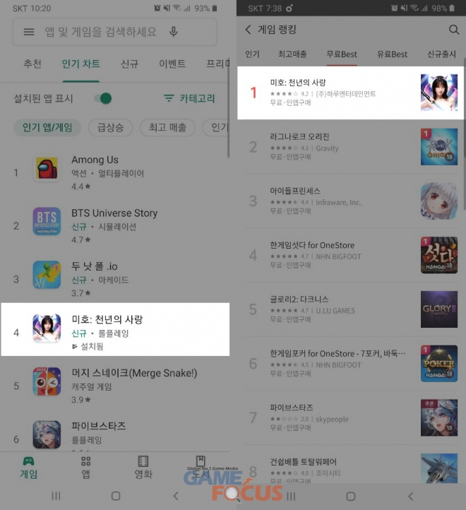구글 플레이스토어 인기순위 4위 진입과 원스토어 마켓에서는 무료 Best 1위를 기록하는 등 오픈과 동시에 상위권 랭크에 진입하여 초반 안정적인 서비스가 진행 중이다.