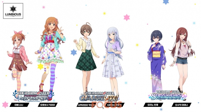 '아이돌마스터 스탈릿 시즌'(한국어 번역판)에 등장하는 아이돌 6명이 공개되었다. '신데렐라 걸즈'에서 아베 나나와 모로보시 키라리, '밀리언 라이브'에서 사쿠라모리 카오리와 시라이시 츠무기, '샤이니 컬러즈'에서 모리노 린제와 오사키 아마나가 프로젝트 루미너스에 참가를 확정했다.
