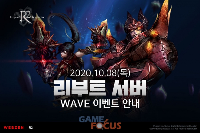 웹젠(대표 김태영)이 자사의 대표 PC MMORPG 'R2(Reign of Revolution)' 리부트 서버에서 'WAVE' 이벤트를 시작해 회원들의 빠른 캐릭터 성장을 지원한다.