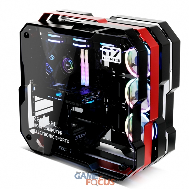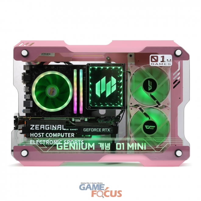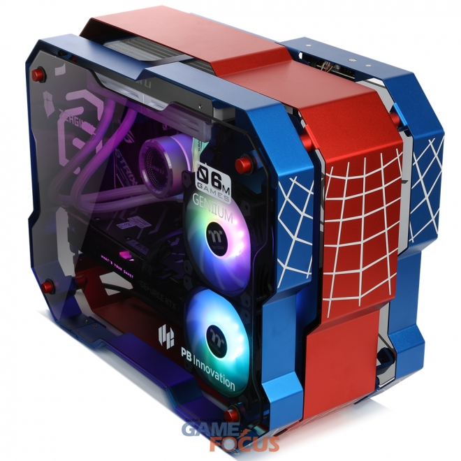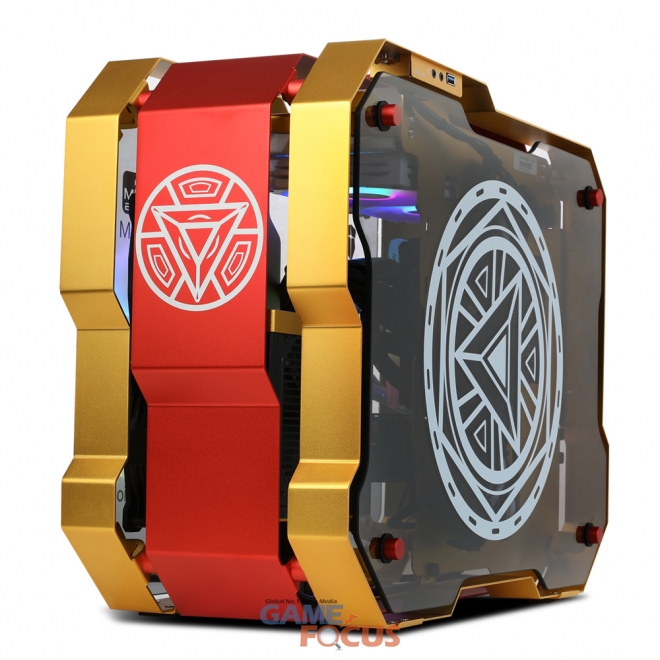 PBC06 아이온 모델은 골드, 레드 컬러가 돋보인다. 스파이더와 마찬가지로 오픈형 디자인에 알루미늄, 강화유리 패널을 채택했으며 알루미늄 섀시 전면부에는 메카닉을 연상시키는 로고를 배치해 차별화를 노렸다.