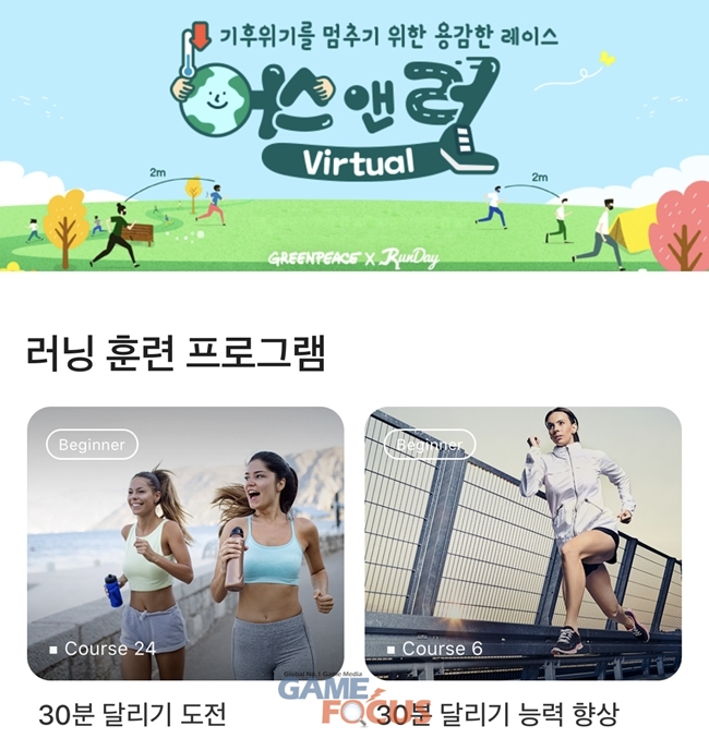 한빛 측에 따르면 그린피스 서울사무소가 9월21일부터 10월19일까지 4주 동안 런데이와 함께 진행한 '어스앤런 버추얼(Earth&Run Virtual)'에 9000여명의 유저가 참여, 누적 9만7000여km를 달렸다.