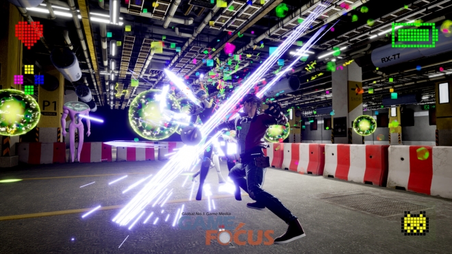 트래비스 터치다운이 애용하는 무기인 빔 카타나와 레슬링 기술로 펼쳐지는 상쾌하고 호쾌한 액션이 Joy-Con의 직관적인 조작으로 보다 과격하게 파워 업했다.