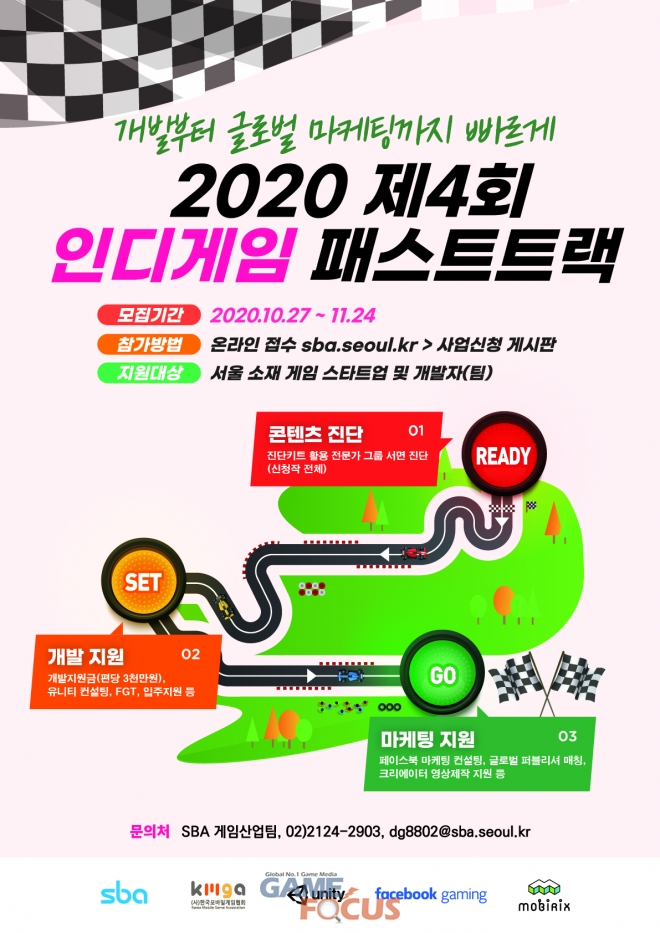 중소기업지원기관 SBA(서울산업진흥원, 대표이사 장영승)가 인디게임 특화 종합 성장지원체계 '2020 제4회 SBA 인디게임 패스트트랙'의 참가기업을 오는 11월 24일(화)까지 모집한다.