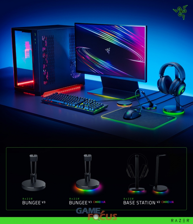 새로운 헤드셋 스탠드는 더 견고하고 더 다재다능하게 디자인됐다. 스탠드는 알루미늄으로 제작된 슬림 싱글 프롱 디자인과 Razer Chroma RGB가 라이트닝되는 미끄럼 방지 받침대를 갖추고 있으며 하단 공간에 USB 3.1 포트 2개와 7.1 서라운드 사운드를 지원하는 DAC가 내장된 3.5mm 콤보 포트를 장착하고 있다. 색상은 블랙, 쿼츠, 머큐리 라인업으로 구성됐다.