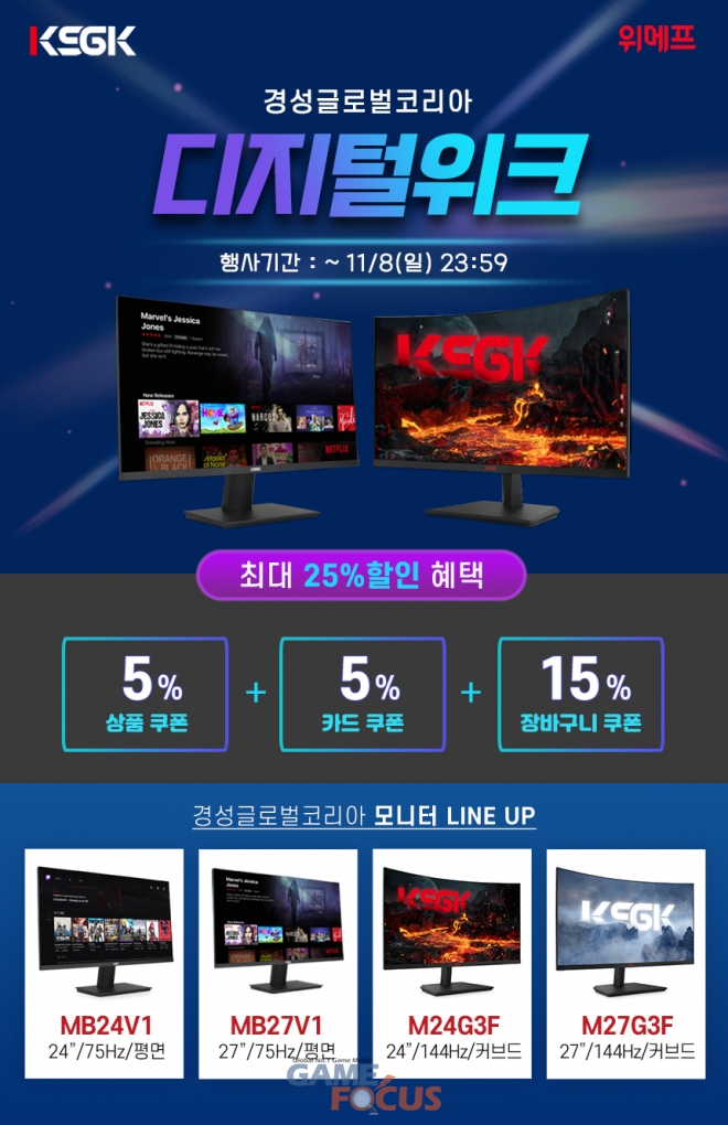 경성글로벌코리아(대표 김준길)의 모니터 브랜드 언더독이 위메프에서 진행하는 디지털위크 행사를 잔행한다. 11월 8일까지 진행되는 이번 이벤트는 최근 출시한 경성글로벌코리아의 신제품 게이밍 모니터 4종이 대상이며 최대 25% 할인혜택을 받을 수 있다.