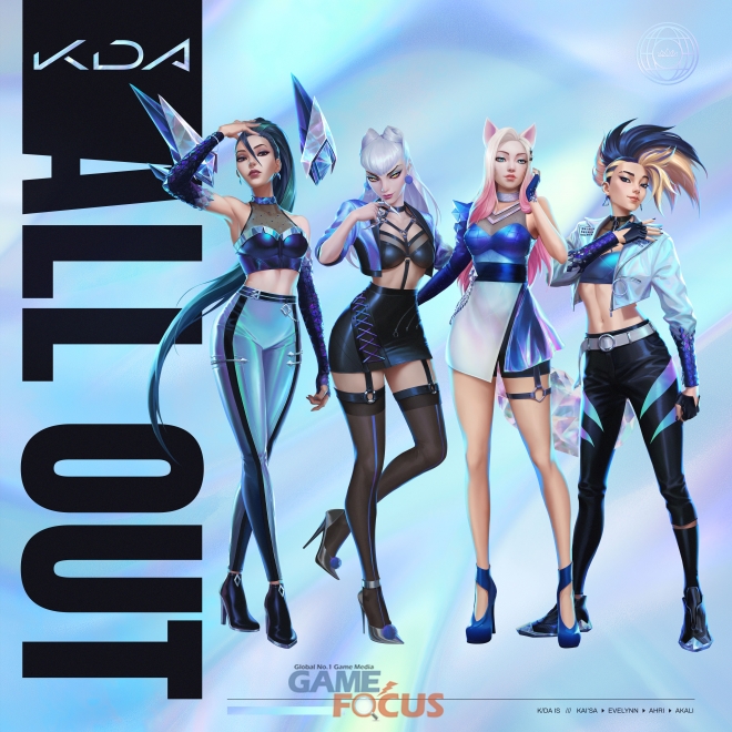 리그 오브 레전드(이하 LoL)의 인기 캐릭터 아리, 카이사, 이블린, 아칼리로 구성된 가상 걸그룹 K/DA가 첫 번째 정식 EP 앨범 'ALL OUT'을 6일 밤 출시했다.
