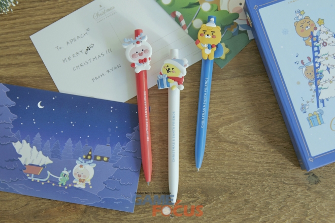 이 밖에도 크리스마스 트리로 변신한 라이언/어피치 피규어 키링, 에어팟프로 케이스, 크리스마스 카드, 아트워크가 담긴 카드북 세트, 연말연시 선물로 안성맞춤인 양말세트와 젤펜세트도 준비했다.