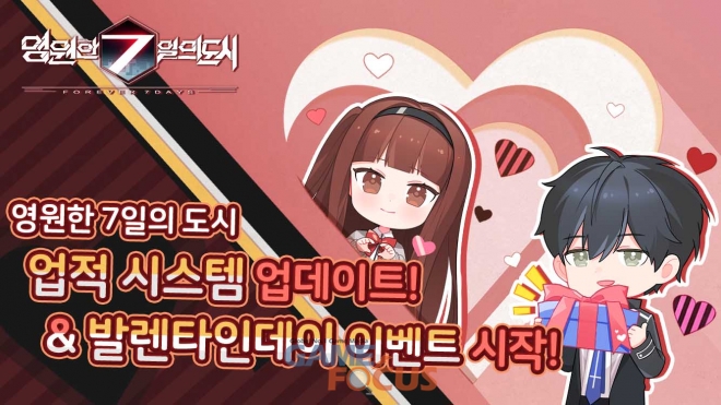 가이아모바일 코리아(대표 양용국)가 자사에서 서비스 중인 미연시 멀티 엔딩 RPG '영원한 7일의 도시'의 업적 시스템을 추가하고 '발렌타인데이 이벤트'를 실시한다.
