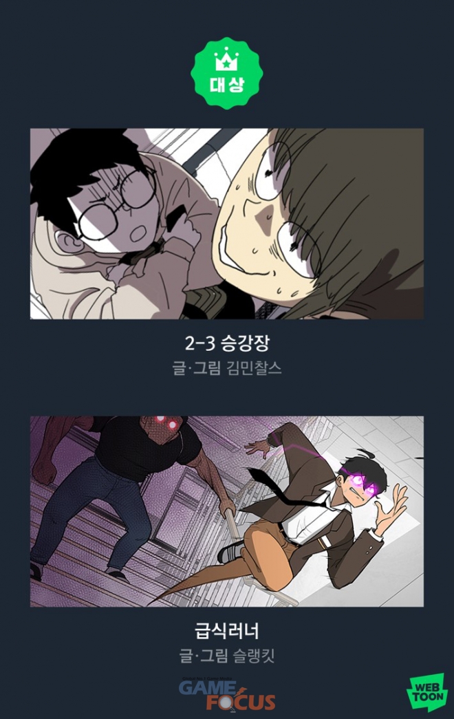 또한, 슬랭킷 작가의 '급식러너'는 급식실 1등을 차지하기 위한 AR 게임을 소재로 하며, 게임 셔틀에서 벗어나고픈 주인공의 고군분투기를 담은 작품이다. 개성 있는 소재와 시원한 연출은 물론, 학원물에 게임 판타지의 장점을 더했다는 평을 받으며 대상작에 선정됐다.