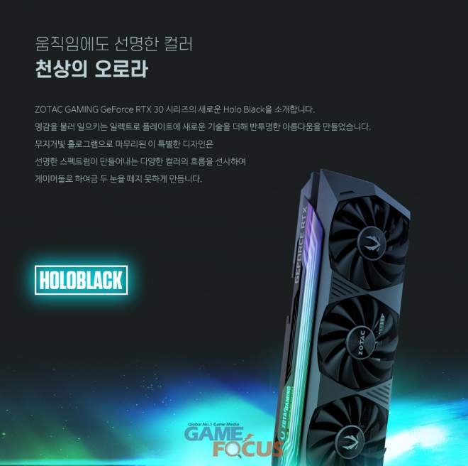 지포스 그래픽카드 전문 기업 조텍코리아(ZOTAC Korea, 대표이사 김성표)가 그래픽카드 최초의 전기 도금식 Holo 디자인을 적용한 프리미엄 게이밍 그래픽카드 모델 'ZOTAC GAMING 지포스 RTX 3080 AMP Holo Black'을 11월 16일 정식 출시했다.