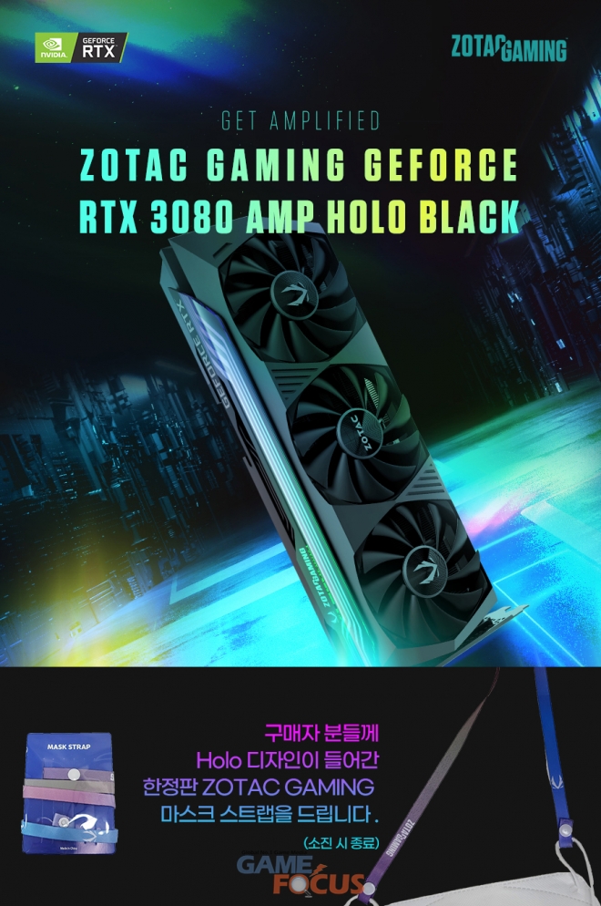 조텍코리아에서는 ZOTAC GAMING GeForce RTX 3080 AMP Holo Black 구매자에게 Holo 디자인으로 제작된 'ZOTAC GAMING 마스크 스트랩'을 수량 소진 시까지 1:1 증정한다.