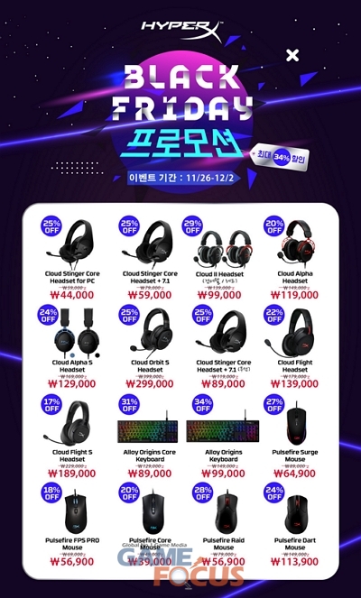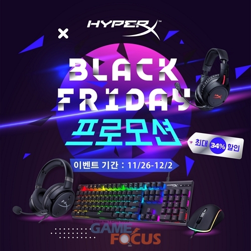 글로벌 메모리 제조사 킹스톤 테크놀로지(Kingston Technology)의 하이엔드 게이밍 기어 브랜드 하이퍼엑스(HyperX)가 오는 11월 26일부터 12월 2일까지 일주일간 블랙프라이데이 프로모션을 진행한다.