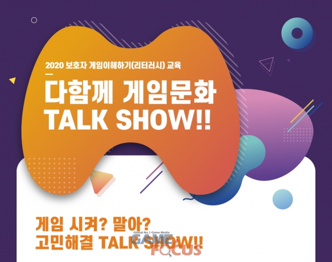 문화체육관광부, 한국콘텐츠진흥원, (재)게임문화재단이 오는 12월 4일(금) ‘2020 보호자 게임이해하기(리터러시) 교육 - 다함께 게임문화 TALK SHOW!!’를 진행한다.