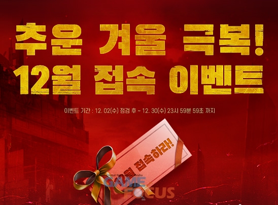 소프톤엔터테인먼트(대표 홍명진)가 12월 2일 추운 겨울을 맞이하여 게임 접속 시 파격적인 혜택을 주는 접속 이벤트를 연다.