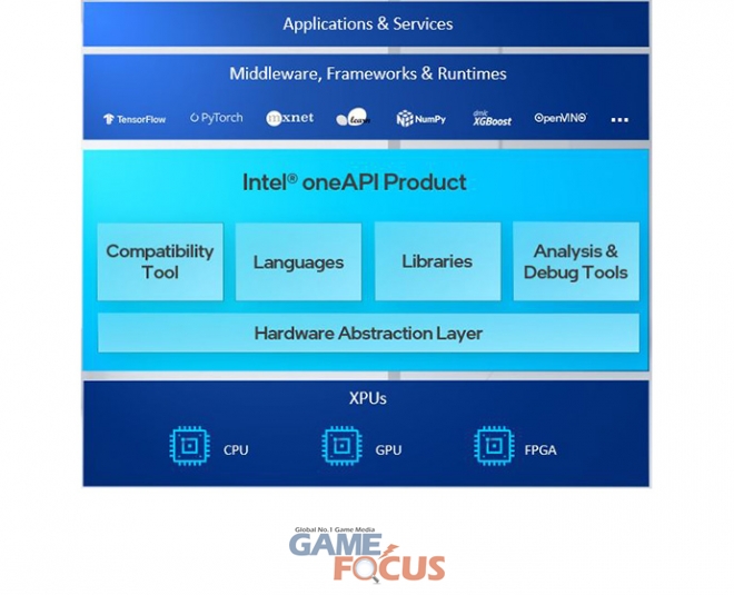 인텔 원API 베이스 툴킷은 오랜 기간 입증된 개발자 도구를 바탕으로 개발되었으며, 컴파일러, 성능 라이브러리, 분석 & 디버그 툴, CUDA에서 작성된 코드를 데이터 패러랠 C++(Data Parallel C+(DPC++))로 이전하는데 도움 받을 수 있는 호환성 툴을 포함하고 있다. 고성능 컴퓨팅(HPC), 인공지능, 사물인터넷 및 렌더링을 위한 추가 툴킷은 보다 신속하게 특정 워크로드를 진행할 수 있도록 지원하는 툴과 구성 요소를 제공한다.