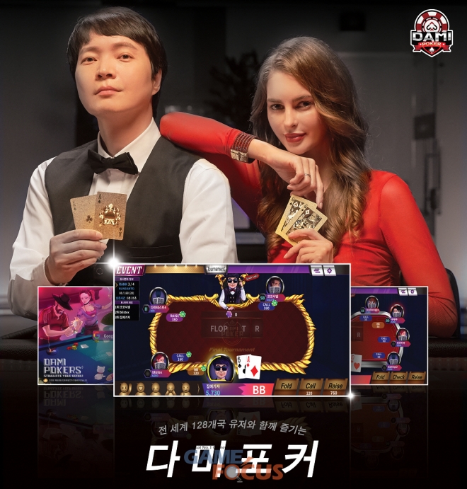 '다미포커'는 국제적인 스포츠로서 인정받고 있는 정통 텍사스홀덤을 비롯해 오마하, 써틴훌라, 바카라, 블랙잭 등의 모든 게임을 온라인 방식의 토너먼트로 플레이할 수 있는 모바일 게임이다. 128개국 동시 출시돼 세계 각국의 이용자들과 두뇌 싸움을 즐길 수 있다.