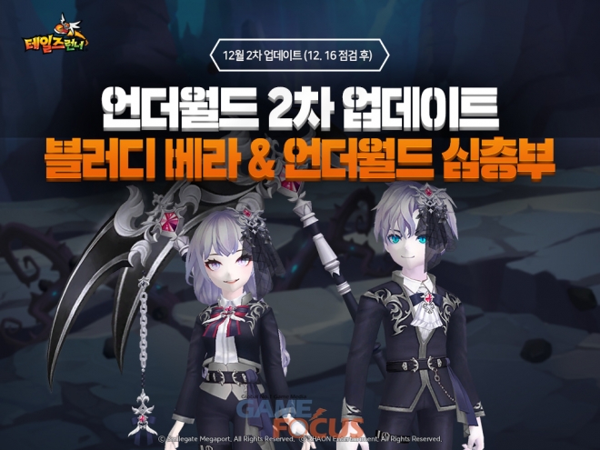 스마일게이트 메가포트(대표 장인아)가 자사에서 서비스하는 인기 온라인 레이싱 게임 '테일즈런너'(개발사 라온엔터테인먼트)의 신규 캐릭터 '블러디 베라'를 정식 업데이트하고, 신규 레이드 모드 '언더월드 심층부'와 크리스마스 기념 이벤트 '언더월드의 크리스마스'를 추가했다.