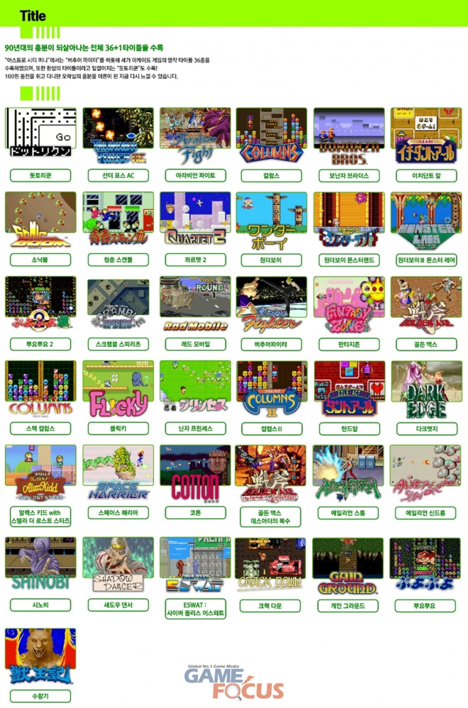 버추어 파이터 등의 수록 타이틀은 아케이드판의 이식이 잘 이루어져 세가 팬들과 고전 아케이드 게임 팬들에게 상당한 기대를 받고 있다.