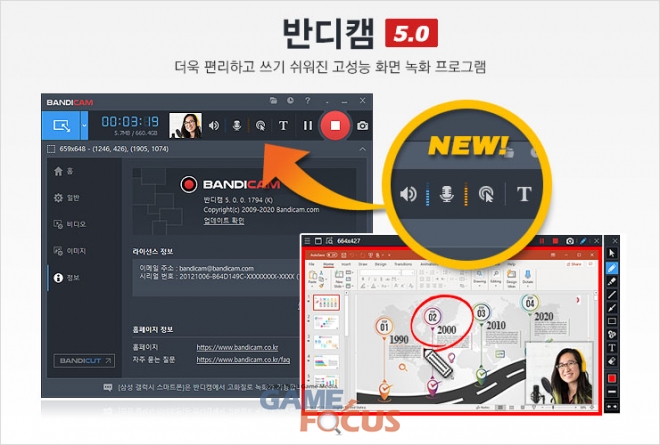 동영상 녹화 프로그램 반디캠을 개발, 판매하는 반디캠컴퍼니(대표 오철욱)가 16일 반디캠 5.0 버전을 출시했다.