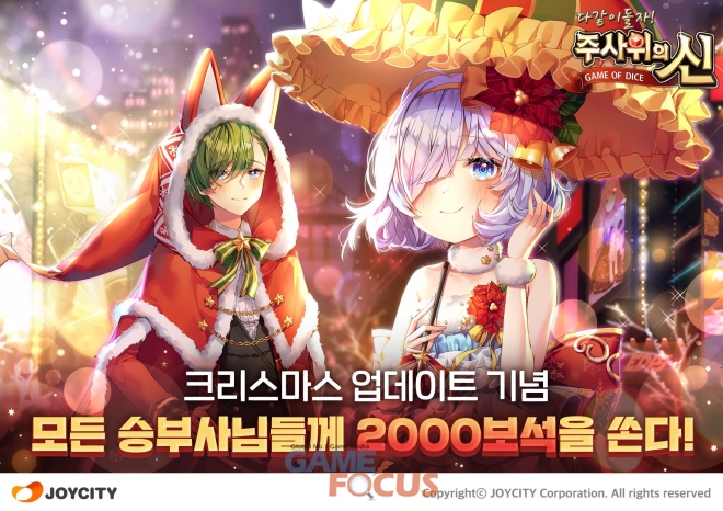 조이시티는 '주사위의 신'의 업데이트와 연말을 기념해 다양한 이벤트들을 실시한다. 크리스마스 핫 타임 이벤트를 통해 블록에 드롭되는 눈꽃 상자를 모아 다양한 아이템으로 교환 가능하다. 3일간 접속만 해도 골드, 럭셔리 포인트, 보석, 토파즈 등 각종 재화를 지급하고, 추가로 사용한 재화만큼 돌려주는 페이백 이벤트도 진행한다.