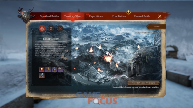 '폐허 토벌'은 위기에 빠진 덕무 왕실을 구출하는 내용의 컨텐츠이다.해당 컨텐츠를 통해 다양한 보상과 '덕무 왕실 명성'을 획득할 수 있다. 1000 덕무 왕실 명성을 보유하면 '군수관리관'을 통해 국경 관문 '뭐르달'로 빠르게 이동도 가능하다.