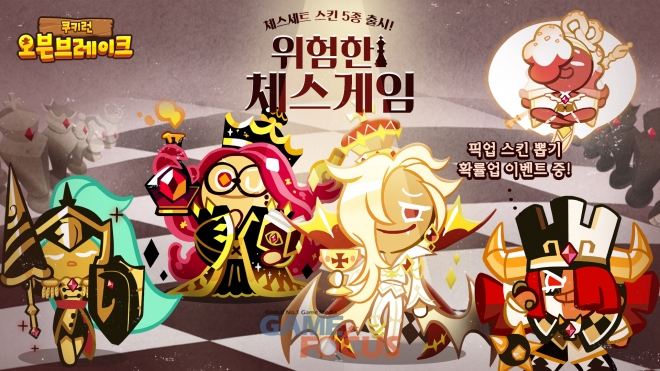 또한 체스를 컨셉으로 신규 쿠키 스킨 5종도 출시됐다. 체스 말들을 바탕으로 우아하게 디자인된 피스타치오맛 쿠키와 요가맛 쿠키, 마라맛 쿠키, 연금술사맛 쿠키, 뱀파이어맛 쿠키의 스킨을 스킨 상점에서 확인할 수 있다.