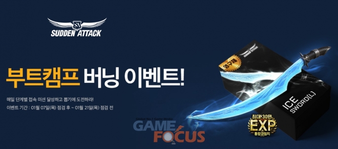 한편, '서든어택'은 올 겨울 캠페인 '2021 시즌 1: 부트캠프'를 기념해 1월 21일까지 버닝 이벤트를 실시한다. 이 기간 접속 시 인기 스킨 무기와 캐릭터, 편의성 아이템 등을 획득할 수 있는 당첨 기회를 평일 3회, 주말은 6회까지 제공하며, 누적 30회까지 당첨 기회를 획득했을 경우 무기 'ICE Sword(L)(영구제)'와 30만 경험치를 추가 지급한다.