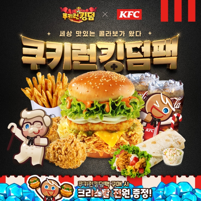 이번 컬레버레이션을 통해 KFC의 신제품 '커넬고스트헌터버거'가 포함된 '쿠키런 킹덤팩'이 출시됐다. 커넬고스트헌터버거는 고스트페퍼소스를 사용해 알싸한 매운맛을 구현한 제품이다. 쿠키런 킹덤팩은 KFC 매장 및 딜리버리를 통해 만나볼 수 있으며, 2월 8일까지 판매된다.
