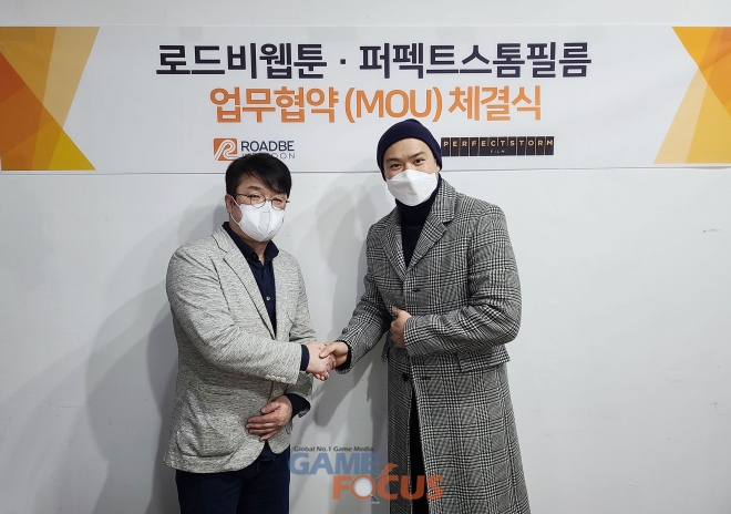 로드비웹툰(대표 박종길)이 퍼펙트스톰필름(대표 강명찬)과 영화 제작 및 웹툰 IP(지식재산권) 확장을 위한 업무 협약을 체결했다.