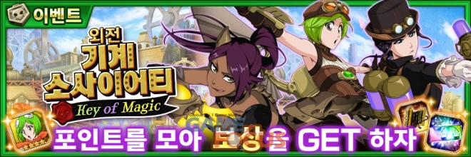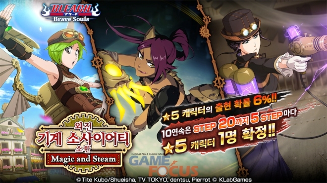 KLab이 3D 액션 게임 'BLEACH Brave Souls'(블리치 브레이브 소울즈, 이하 '브레이브 소울')에서 '외전 기계 ・소사이어티 소환 Magic and Steam' 공개와 함께 '외전 기계 소사이어티 Key of Magic' 한정 이벤트를 개최한다.