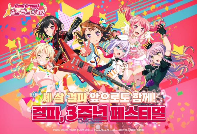 카카오게임즈(각자 대표 남궁훈, 조계현)가 29일(금), 크래프트에그(대표 모리카와 슈이치)와 부시로드(대표 하시모토 요시타카)가 공동 제작한 인기 모바일 리듬게임 '뱅드림! 걸즈 밴드 파티!'의 출시 3주년 기념 '시즌3' 업데이트를 진행했다.