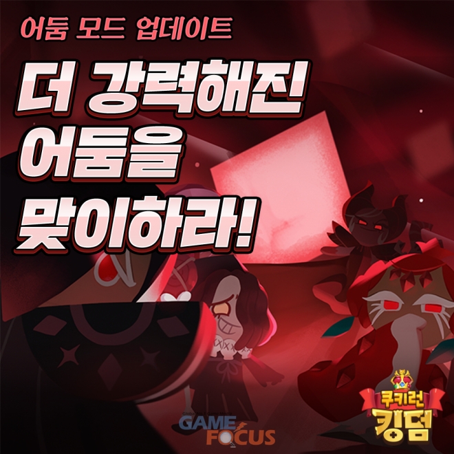 쿠키런: 킹덤은 이번 업데이트를 통해 월드 탐험 콘텐츠에 어둠모드를 추가했다. 어둠모드는 기존의 일반모드보다 한층 난이도가 높아진 하드모드로, 에피소드3까지 완료한 경우 입장할 수 있다. 그 이후 에피소드부터는 일반모드를 별 100%로 클리어 했을 때 동일 에피소드의 어둠모드가 오픈된다.