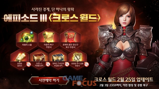 블루포션게임즈(대표 신현근)는 직접 개발하고 서비스하는 모바일 정통 MMORPG '에오스 레드'의 ‘에피소드 3 : 크로스 월드' 사전예약이 4일부터 시작되었다고 밝혔다.