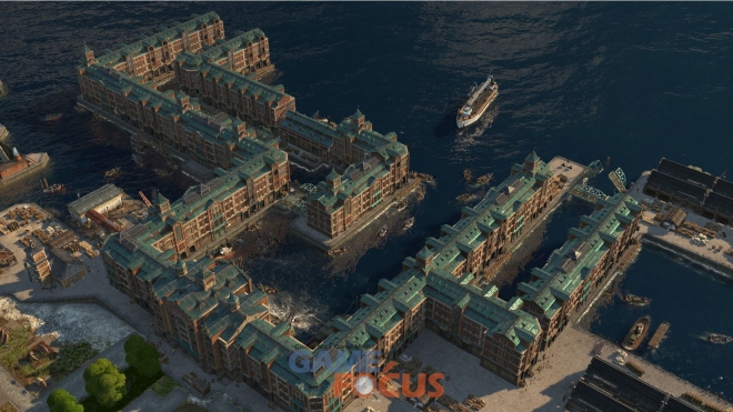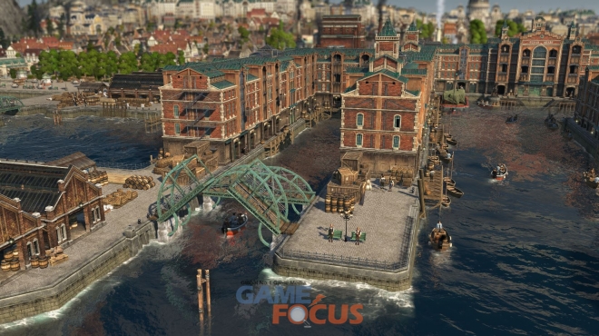 아노 1800™ 부둣가는 세계 최대 물류 산업 단지이자 독일 함부르크 유네스코 세계유산인 'Speicherstadt'에서 영감을 받아 디자인된 메인 건물에서 게임이 시작되며, 모듈식으로 구성된 창고 건설을 통해 지역을 발전시켜 나가게 된다. 각각의 모듈은 물자의 적하 속도를 높여주거나 수리 시간을 줄여주는 등 다양한 효과를 가지고 있다.