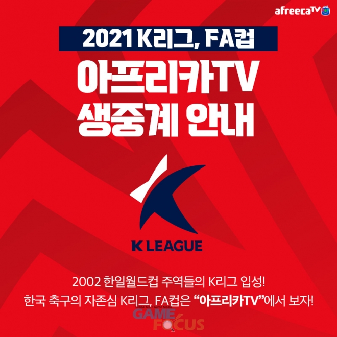 아프리카TV가 2021년에도 국내 프로 축구 'K리그, FA컵' 생중계를 이어간다.