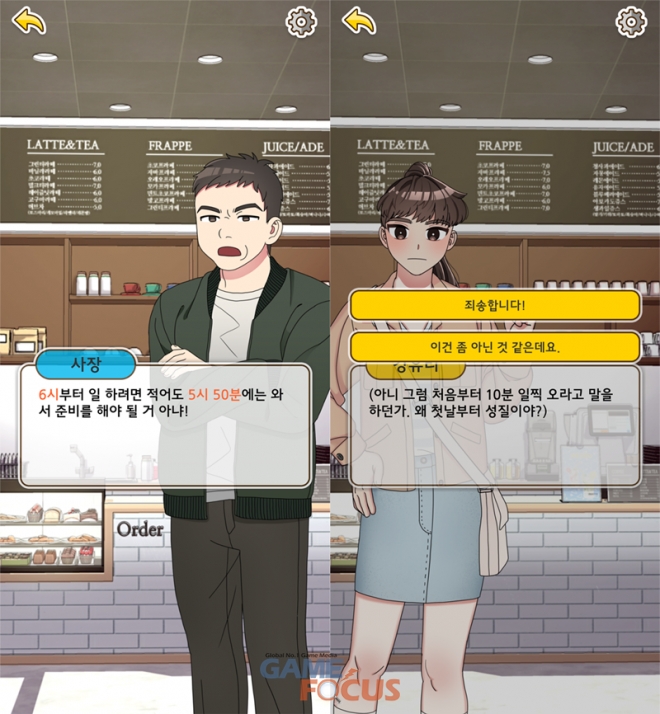 게임 속 플레이어는 카페 알바생 '강유리' 가 되어 여러가지 사건을 겪고, 상황에 맞는 판단으로 문제를 해결해 나가야 한다.