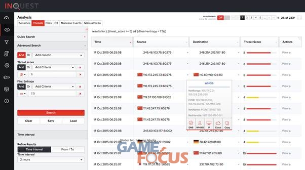 침해 탐지 : 인퀘스트 랩(InQuest Labs) 연구 조직과 민간 및 공공 협력을 통해 광범위하게 위협 정보를 수집하며, 수집 정보 기반 행위 분석을 통해 침입자를 식별하고 C&C 서버 통신을 탐지한다. 이를 통해 조직의 위협 행위를 식별하여 즉각적으로 대응이 가능하다.