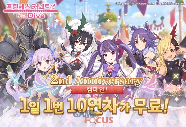 한편 카카오게임즈는 '프린세스 커넥트! Re:Dive(리:다이브)'의 2주년을 기념해, 3월 31일까지 매일 무료 10회 연차 제공 이벤트를 진행하고 2주년 기념 '랜드솔배 로그인 보너스'를 실시, 매일 '250~500 쥬얼'을 특별 이벤트 결과에 따라 차등 지급한다.