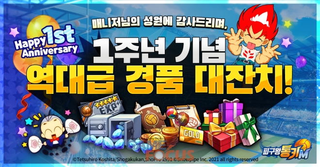 이 밖에도 '피구왕통키M' 공식 카페를 통해 매일 1주년 기념 쿠폰과 페이백, 축전 등의 이벤트도 열릴 예정이다.