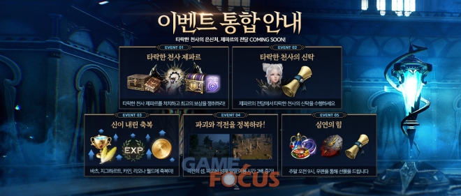 전체 이용자 대상 이벤트도 4월 7일까지 열린다. ▲'제파르의 전당' 내 이벤트 NPC에게서 '이벤트 신탁서'와 '계승자의 버프' 아이템을 아데나로 구입할 수 있는 '타락한 천사의 신탁' ▲매주 토요일과 일요일 오전 9시에 다양한 혜택을 지급하는 '심연의 힘' ▲'격전의 섬', '파괴된 성채' 던전 이용 가능 시간이 1시간에서 2시간으로 증가하는 '파괴와 격전을 정복하라' 이벤트 등이다.
