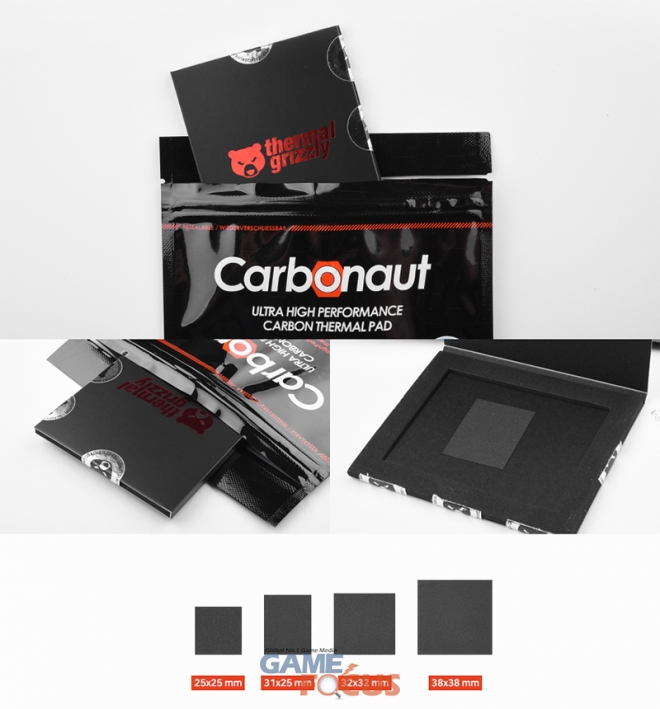 서멀 그리즐리의 카보너트는 탄소 섬유로 잘 알려진 카본 파이버(Carbon Fiber) 소재를 기반으로 만들어진 서멀 패드 제품이다. 따라서 카본 파이버 특유의 고온과 화학물질에 대한 우수한 내성과 열팽창이 적고 가벼워 우주 항공 산업에도 사용되는 특성 그대로를 담고 있다. 따라서 작고 가벼우며, 열과 압력에 대한 내구성이 우수하여 재사용이 가능하다.