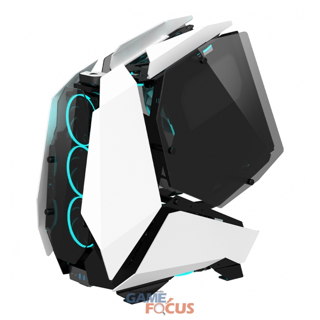 제품 외부는 기갑 테마를 형상화한 모듈형 디자인으로 역동감이 더해졌으며, 양 측면은 강화유리 패널로 장착한 컴포넌트 및 LED 튜닝 요소를 극대화한다. 전면 하단에 USB 3.1 Gen1 Type-A 포트와 최신 USB 3.1 Gen2 Type-C 포트가 구성되어 초고속 외장 장치를 비롯한 다양한 장치의 연결 편의성을 갖췄다.