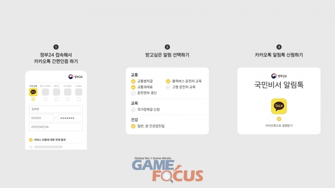카카오(공동대표 여민수․조수용)는 행정안전부(장관 전해철)와 3월 29일부터 국민건강보험공단 건강검진 안내, 도로교통공단 운전면허 갱신 알림, 경찰청 교통 과태료 납부 안내 등 교통, 교육, 건강 등 3개 분야 8종의 국민비서 알림 서비스를 시작한다고 밝혔다.