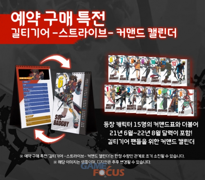 * 예약 구매 특전 '길티기어 -스트라이브- 커맨드 캘린더'는 한정 수량인 관계로 조기 소진될 수 있습니다.