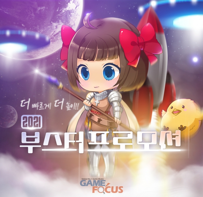 이번 프로모션은 2021년 첫 부스터 프로모션으로 3월 31일부터 5월 첫 번째 정기점검 전까지 진행한다. 프로모션 기간 동안 캐릭터 생성 시 명의당 1회에 한해 전승노비스 캐릭터를 제공하며 15레벨마다 다양한 아이템을 증정하는 부스터 팩을 함께 지급한다. 또한 부스터 캐릭터에 부스터콜, 무기 및 방어구, 쉐도우, 의상 아이템 등을 증정하며 전직 간소화, 전용 퀘스트, 전용 상점 등 편의 혜택도 누릴 수 있다.