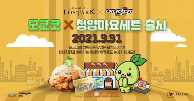 스마일게이트 RPG(대표 지원길)의 블록버스터 핵앤슬래시 MMORPG (다중접속역할수행게임) 로스트아크가 네네치킨과 콜라보레이션을 통해 지난 31일 '모코코X청양마요세트'를 출시하고 다양한 이벤트도 실시 중이라고 2일(금) 밝혔다.